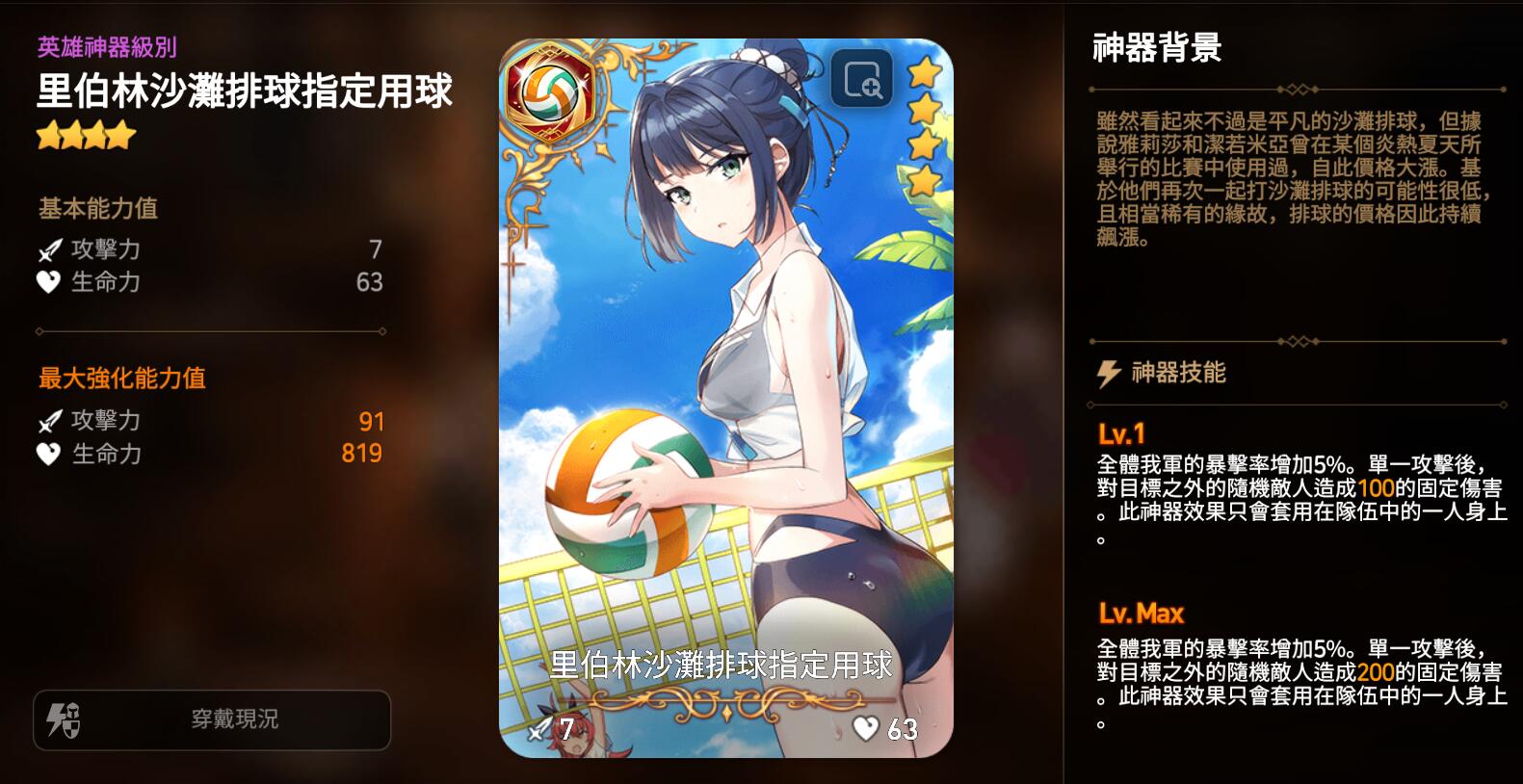 - 4★ 神器「里伯林沙灘排球指定用球」