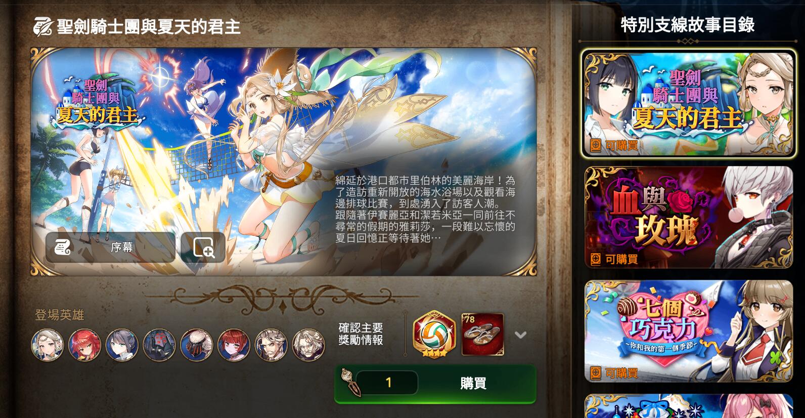 支線故事 | 聖劍騎士團與夏天的君主 | 購買特別的時間之書 「聖劍騎士團與夏天的君主」時 |