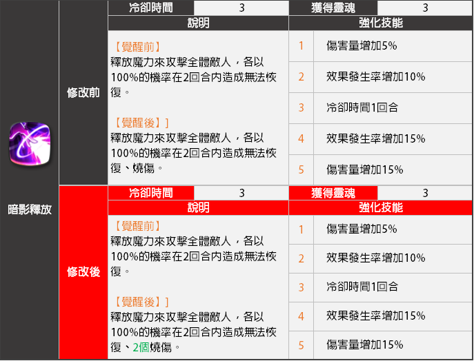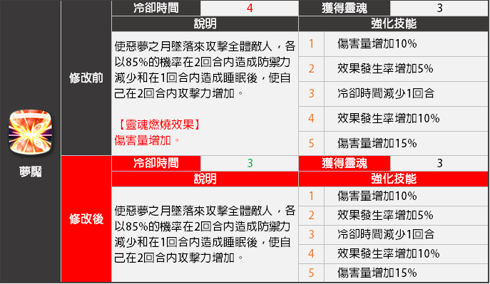 - <夢魘>技能冷卻時間將會減少,靈魂燃燒效果將會移除。