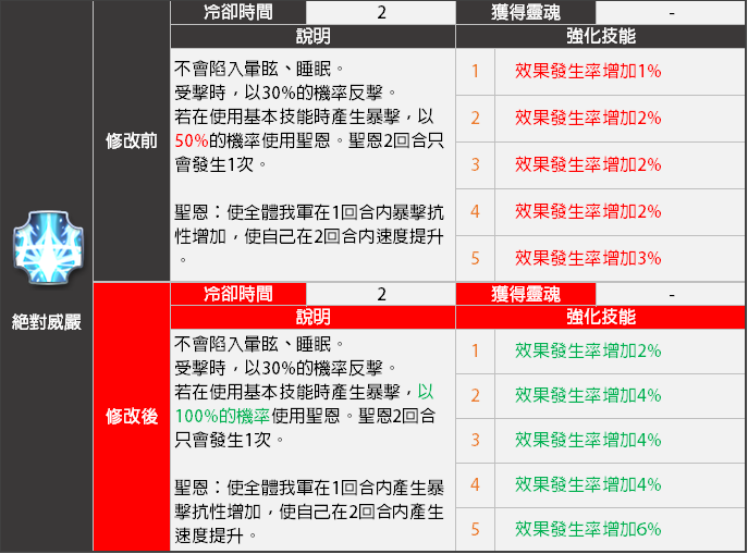 - <絕對威嚴>技能效果將會變更。