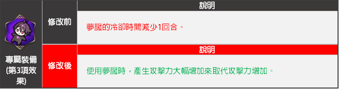 - 專屬裝備第3項效果的<夢魘>技能效果將會變更。
