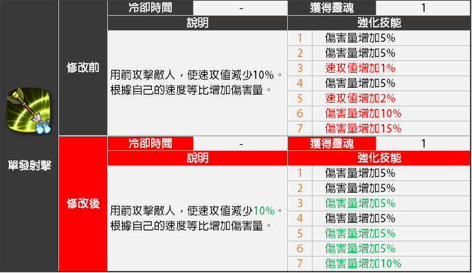 - <單發射擊>技能的強化效果將會變更。