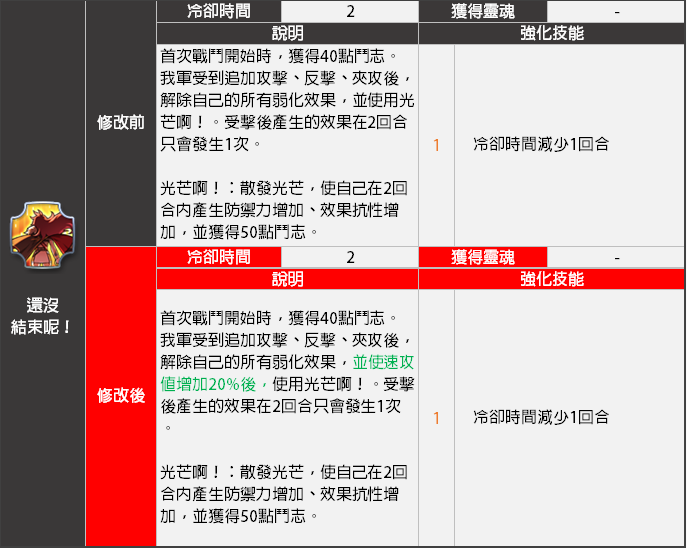 - <還沒結束呢!>技能效果將會變更。