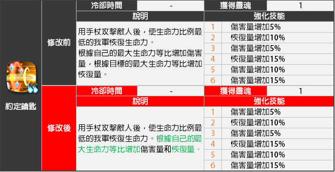 - <約定鑰匙>技能效果將會變更。