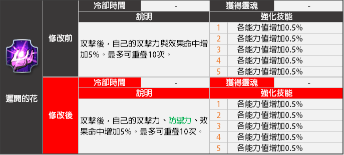 - <遲開的花>技能效果將會變更。