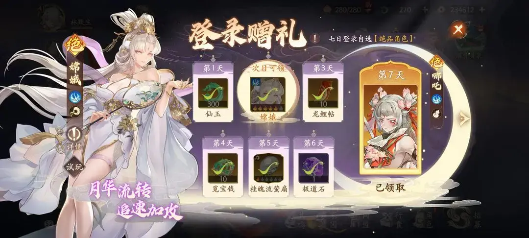 累计招募奖励:每抽到180获得随机绝品角色、300获得绝品自选角色,同时刷新累计招募奖励。