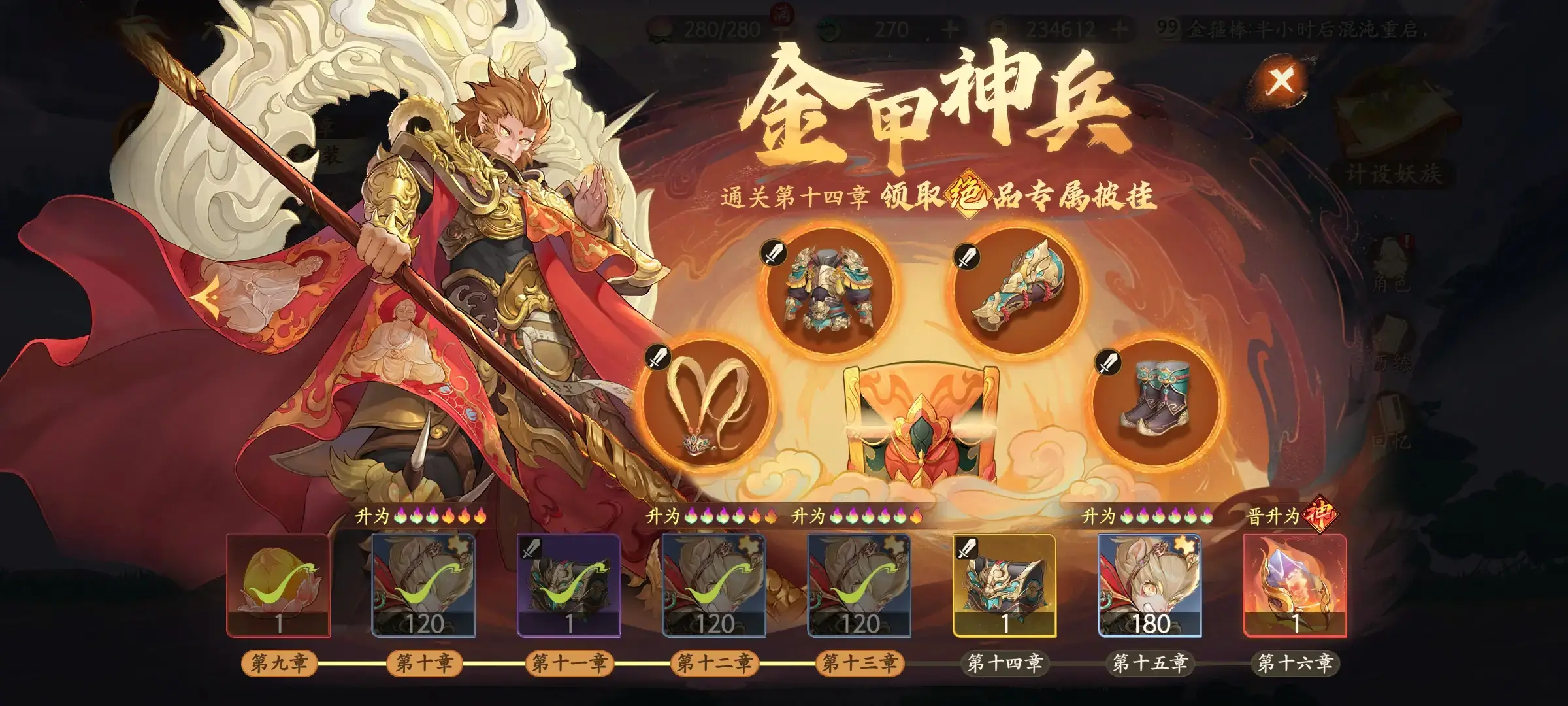 刷角色等级突破材料和法宝突破材料的关卡,有着抽卡卷和仙玉奖励,其中的推图奖励还会赠送孙悟空零火到满星的碎片,以及其他稀有资源。(小知识:关卡存在BOSS时建议优先针对BOSS输出。)