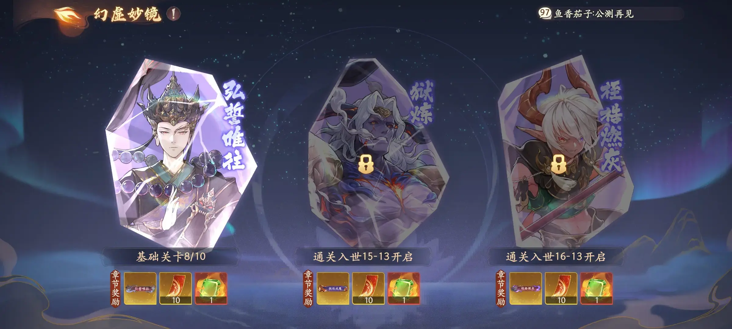 可以看作资源副本,在这里可以刷取经验丹、通宝(金币)、命格(角色天赋升级材料)、法宝源蕴(法宝升级经验材料)阵营命晶(可以看作命格系统中额外提升角色的材料)难度一般。