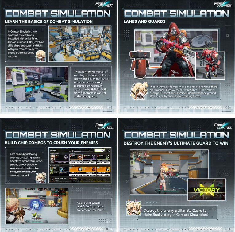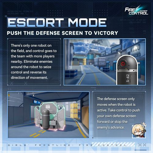 在这次的预告片中,官方展示了战术人形的服装、武器造型,以及PvP 模式「护送模式(Escort Mode)」、「占领据点(Control Point)」、「团队竞赛(Team Competition)」、「模拟战(Combat Simulation)」的实机画面。