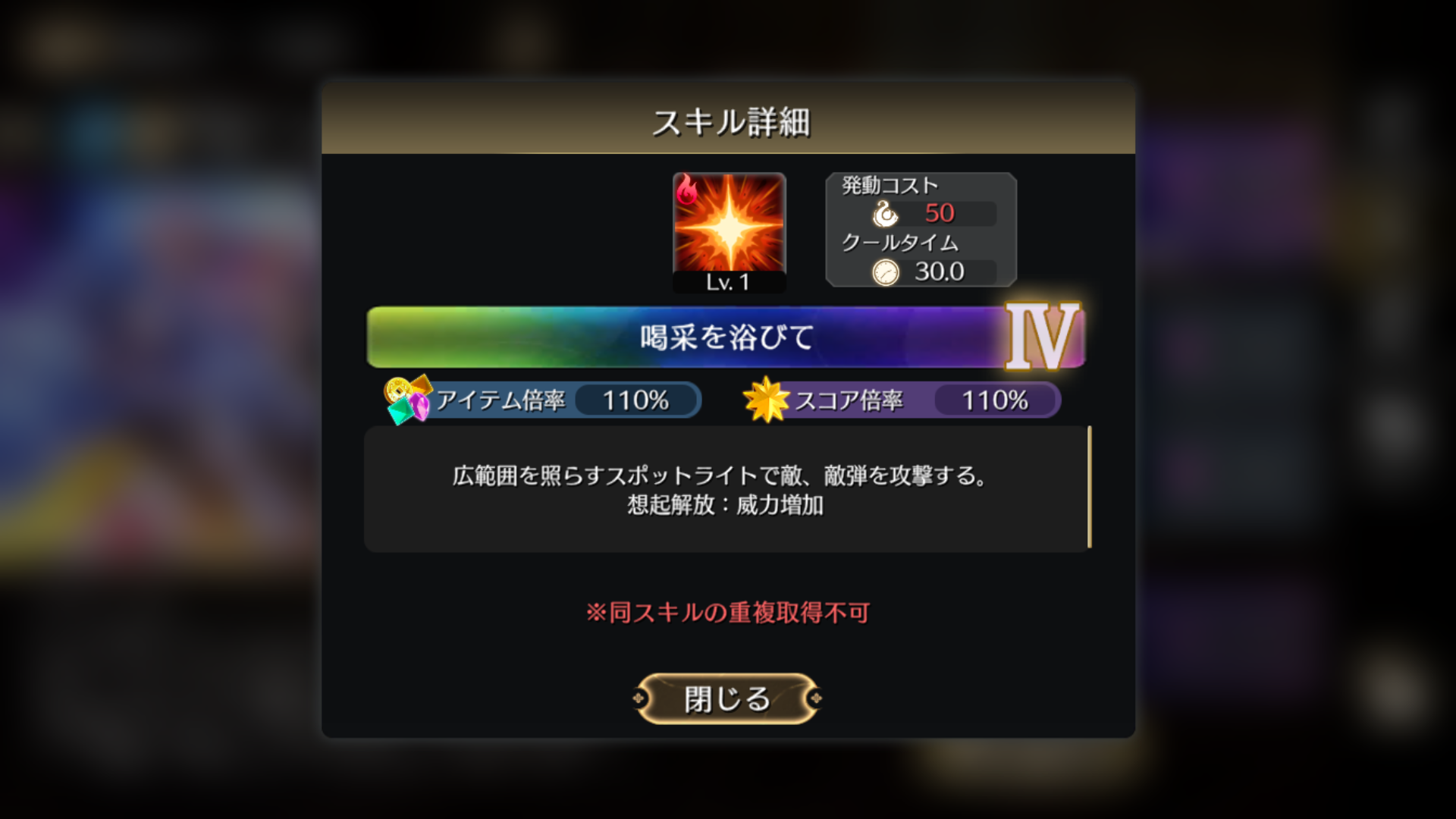 消灭敌人或敌弹的道具/得分倍率随深化等级提升,最高为150%/150%