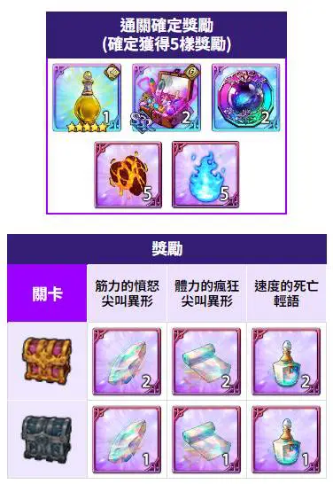 * 每日15:00(台灣時間)重置遊玩次數,入場時需要消耗行動力 1。