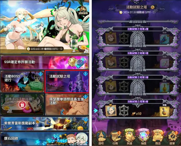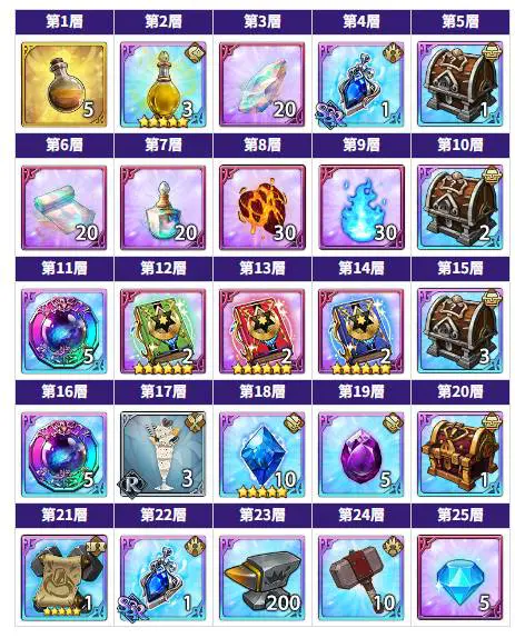 - 活動試驗之塔由25層組成,通關時可以獲得該層數的通關獎勵。