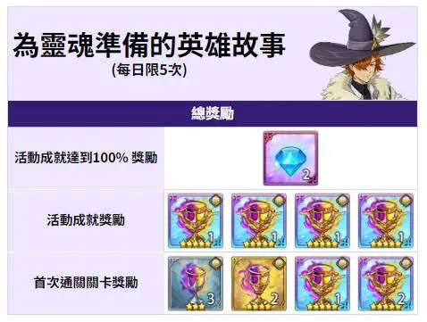 - 活動內容:活動期間內,通關魔獸戰第3層時,確定獎勵增加為2倍。