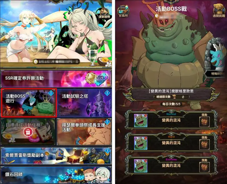 - 在活動BOSS戰活動大廳,可以選擇難易度(Normal / Hard / Extreme)。