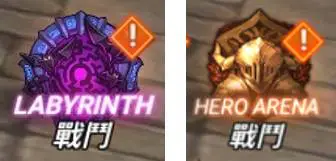 - '英雄競技場/地下迷宮'活動進行期間,主要畫面的[戰鬥]選單圖示變更為各活動圖示。