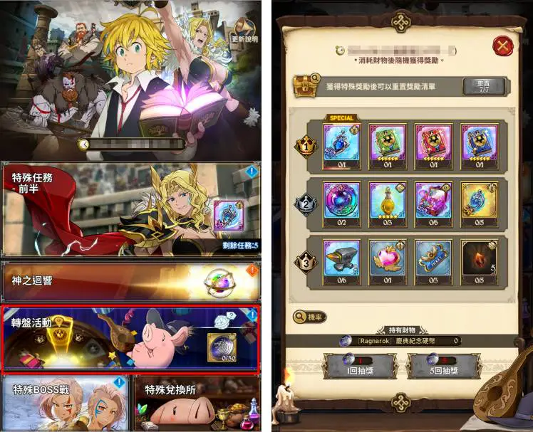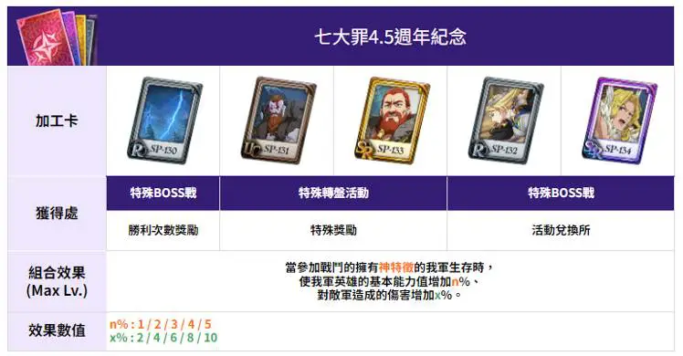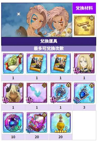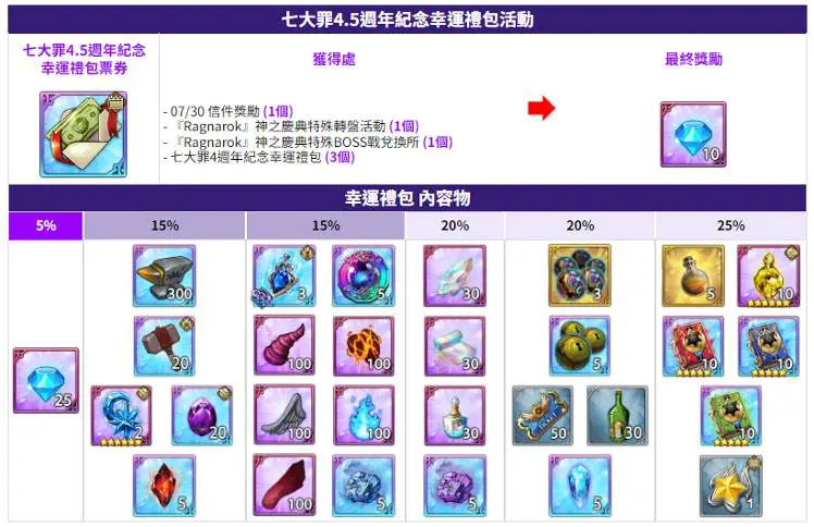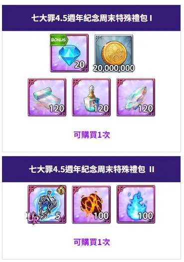 ※ 透過遊玩各種活動與購買禮包,最多可以獲得6張七大罪4.5週年紀念幸運禮包票券。