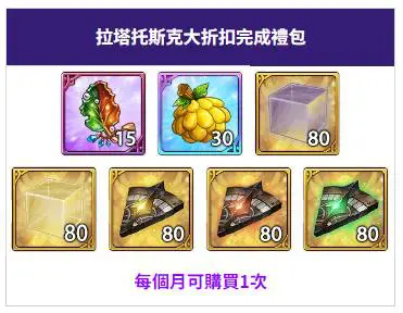 * 該商品將在 08/06 維護時 (台灣時間)重置購買次數。