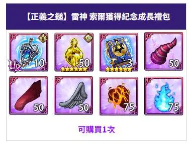*'[【正義之鎚】雷神 索爾獲得紀念成長禮包]僅在首次獲得正義之鎚】雷神 索爾6小時內顯示。
