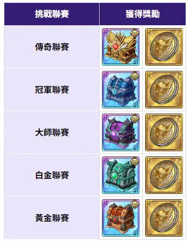 ※ 在遊戲內可以確認各聯賽的詳細獎勵資訊。