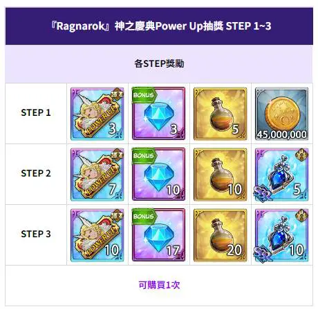 * ‘『Ragnarok』神之慶典Power Up抽獎 STEP1~3’將在08/06 維護後(台灣時間)進行重置。