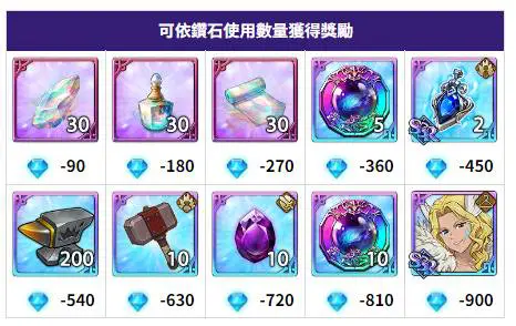 - 活動期間內,可根據鑽石消耗量獲得獎勵。