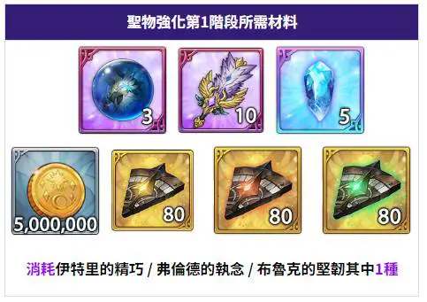 ※ 合作英雄進行聖物第1階段強化時,不會消耗'伊特里的精巧 / 弗倫德的執念 / 布魯克的堅韌'。