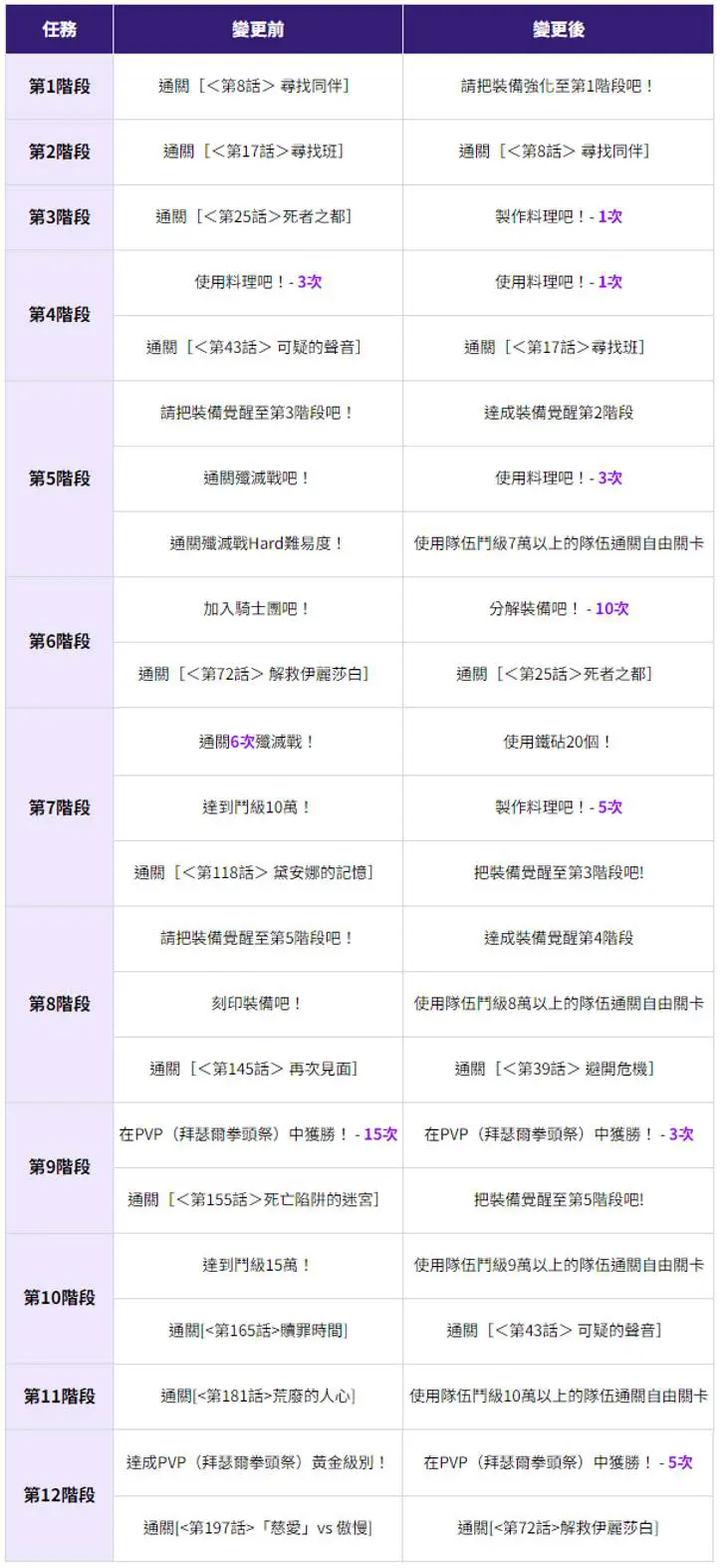 * 無論是否完成目前進行中階段的任務,將轉換為變更後的任務且重置獲得獎勵的機會。