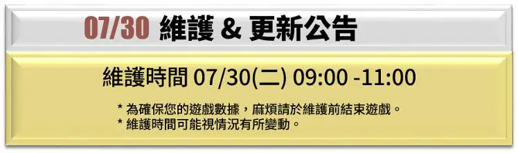 維護時間:07/30 09:00-11:00 12:00 11:10