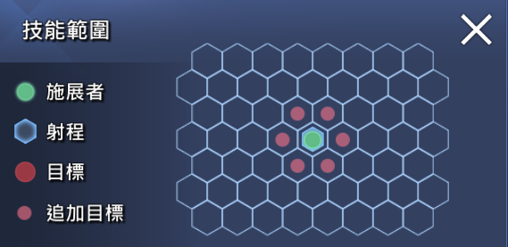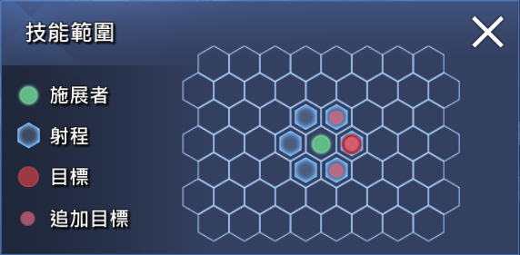 ![]() 防御姿势 | 擺出防禦姿勢,保護範圍內的我方英雄。解除目標的1個減益效果,並增加防禦力1回合 | ||||||||