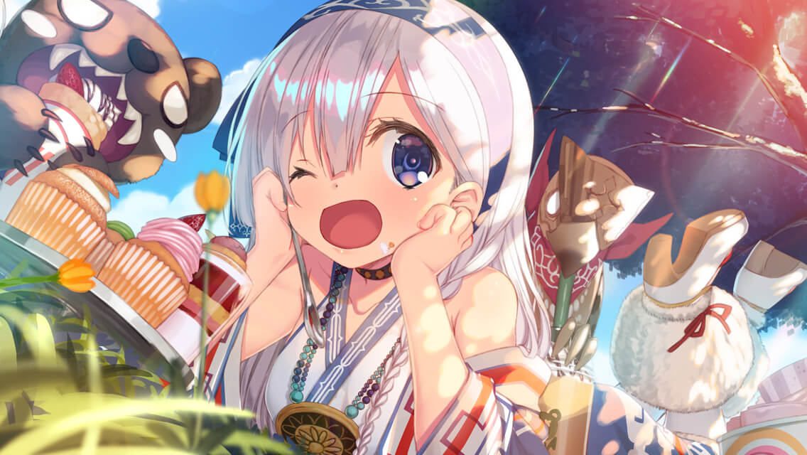 嗯~在大自然中吃到城镇的甜点是特别的。 特别是这个新品,很棒…安奴和雷拉也是这么说的。 喂喂,你在想什么呢,那么入神,到底怎么了嘛。 你也一起吃嘛…还是说要我喂你吃? | ||||||||||