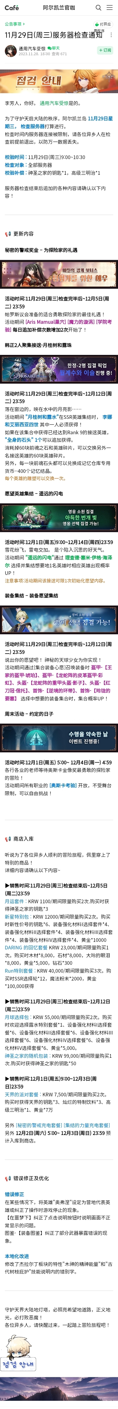 【韩服】11月29日周三例行维护(机翻:仅供参考)