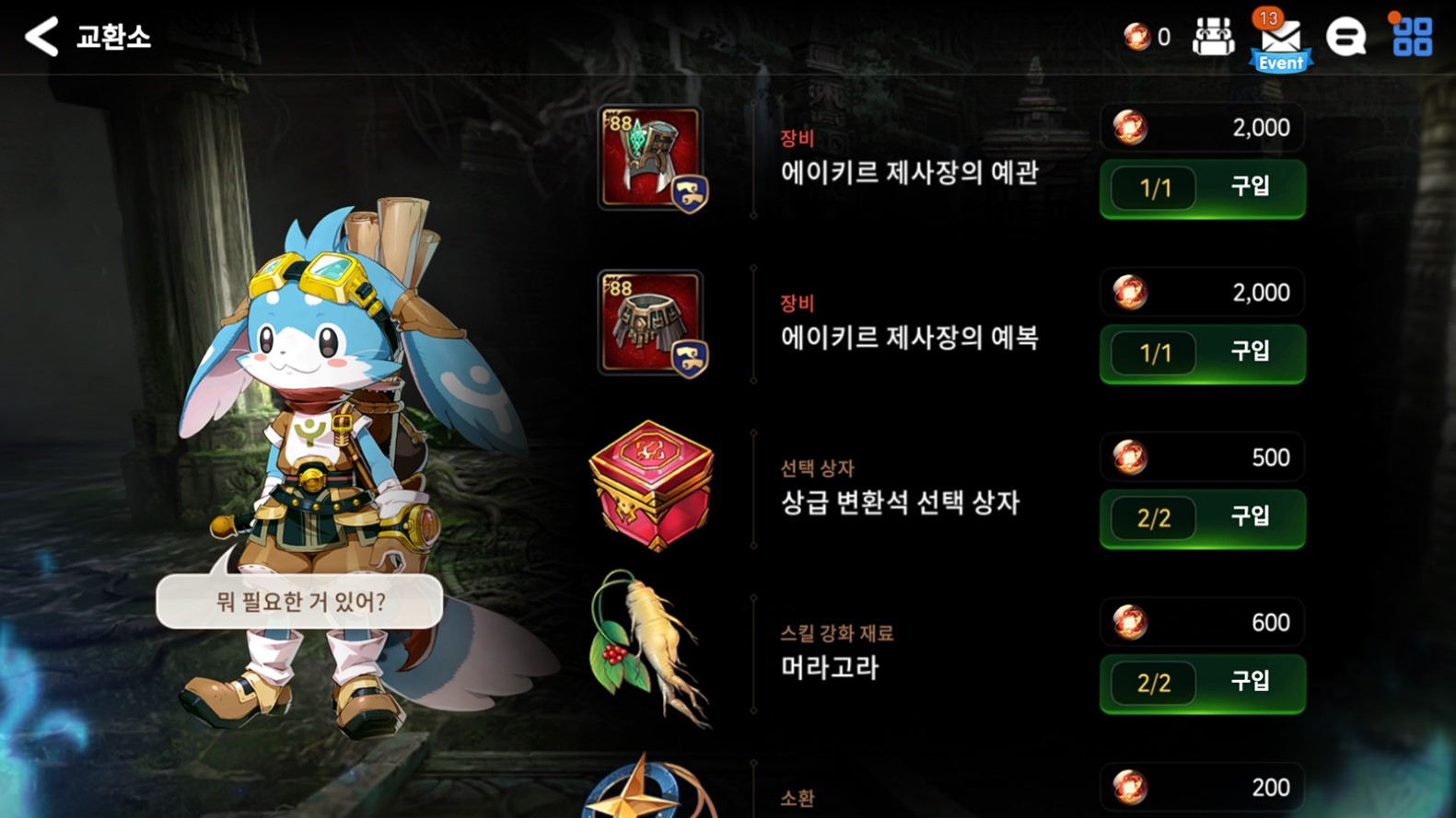 - [支線故事 > 特別的時間之書]教學中所說明的特別支線故事之購買財物為「天空石」,將修正該現象。