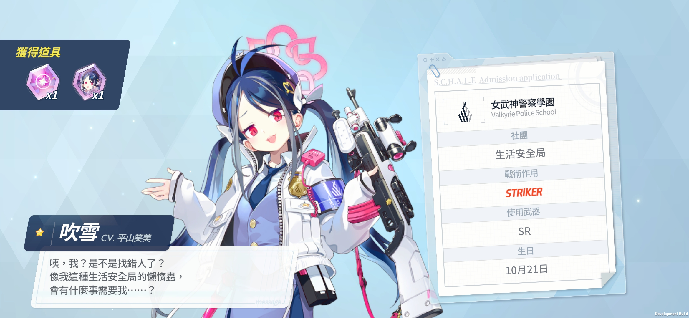 -完成[活動Story 01 –D.U. 135區] 時,可以獲得吹雪(★1)