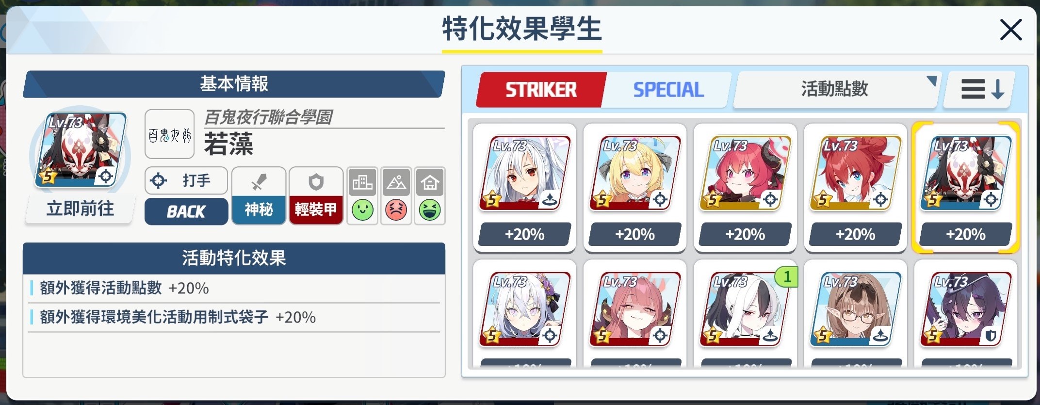 -各活動貨幣適用的特化學生與詳細資訊可以點擊[特化學生] -> [各活動貨幣名稱]進行確認