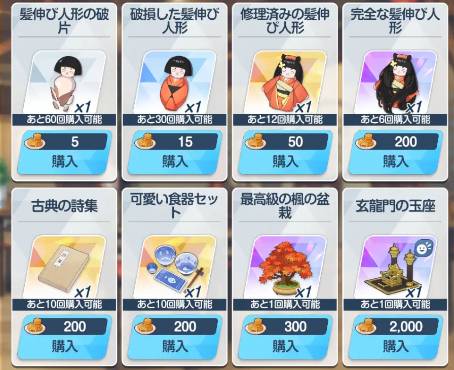 ![]() | 经验书 可换 BD的话山海经使用率不高但到时候也可以扔制作换其他学校BD 还是比较推荐换的 但不是必换 远古素材 人偶较新素材 可换 橙礼物 必换 紫礼物 必换 紫妃咲互动家具 可换 |