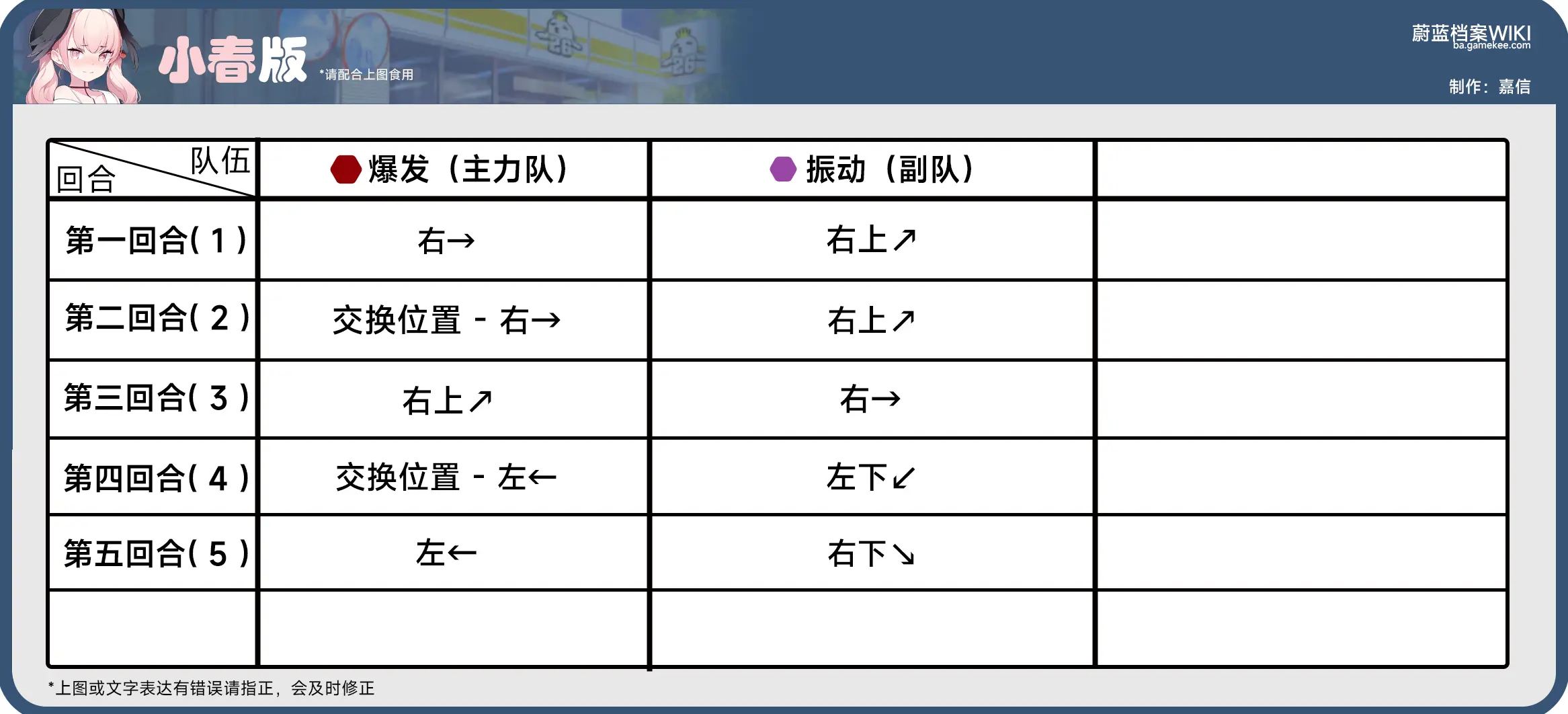 请各位sensei请注意,在没有额外说明的情况下,本攻略中队伍的行动顺序默认为小春版中编队自左往右。
