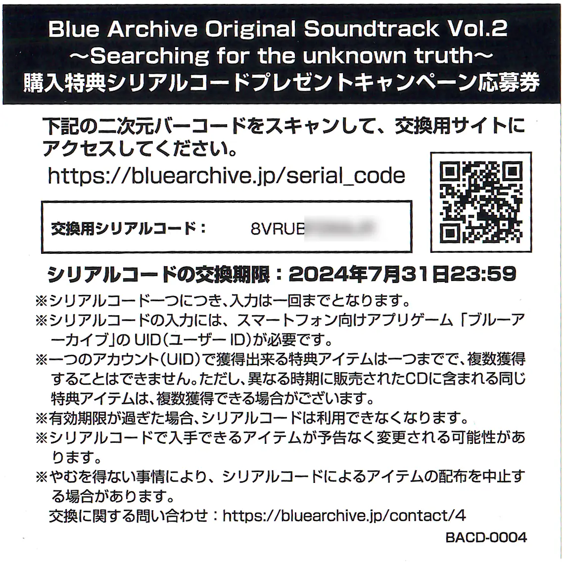 ![]() | Blue Archive Original Soundtrack Vol. 1~Longing for the memorable days~ | |