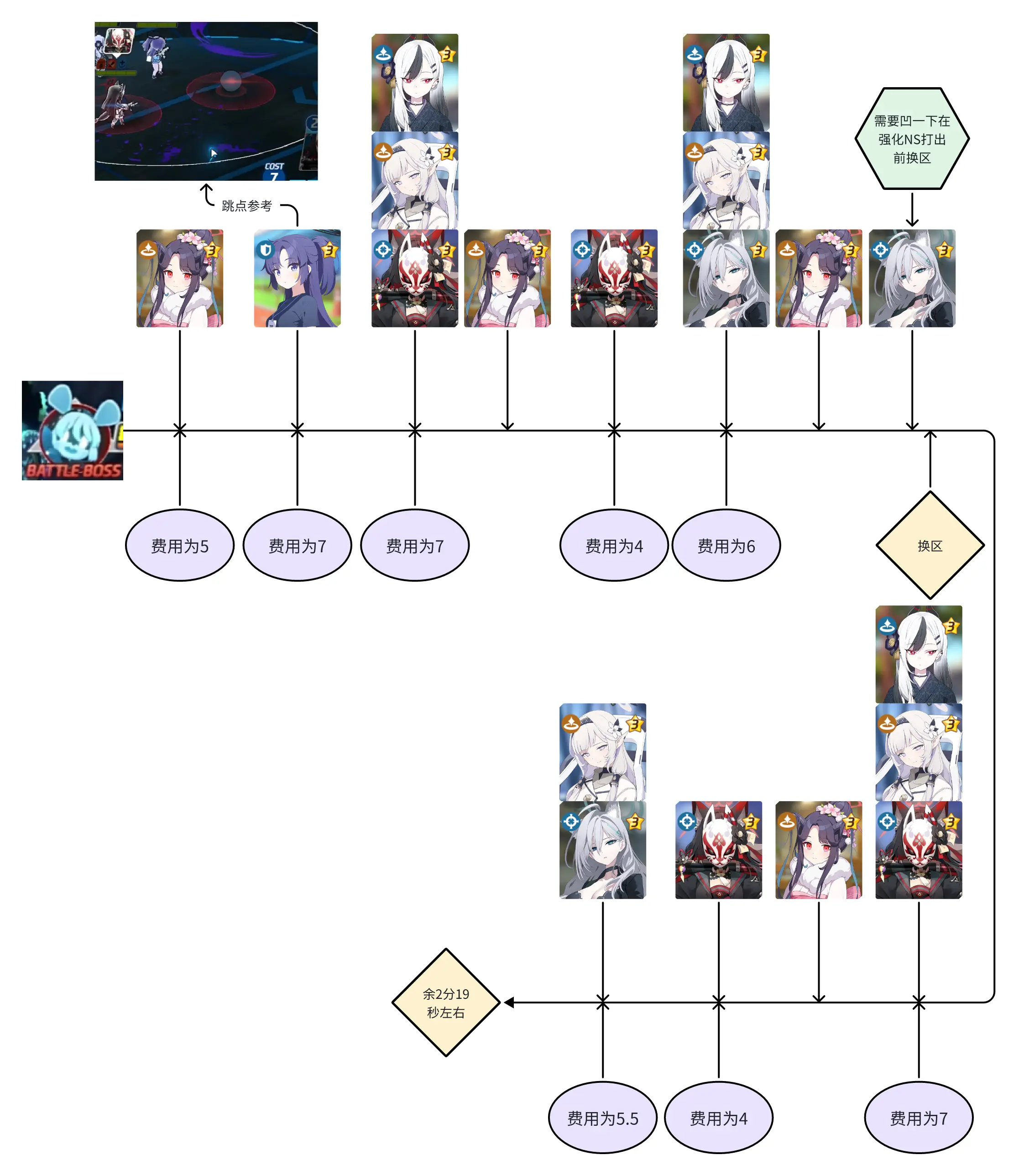 2. 箭头位置用以判断技能使用时机;箭头间间隔能大致反应技能使用时间段;堆叠情况为由下往上尽快释放技能