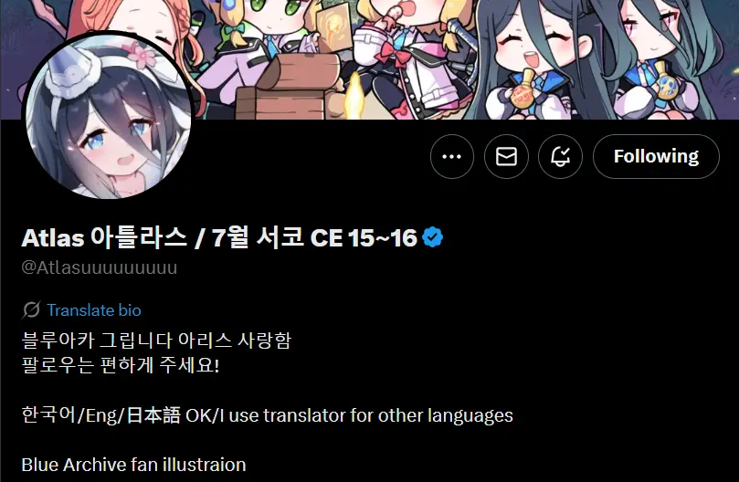 Atlas,韩国二创作者,平时作品以精美插画为主,主角多为爱丽丝和凯伊,同时也出版过一本同人志。