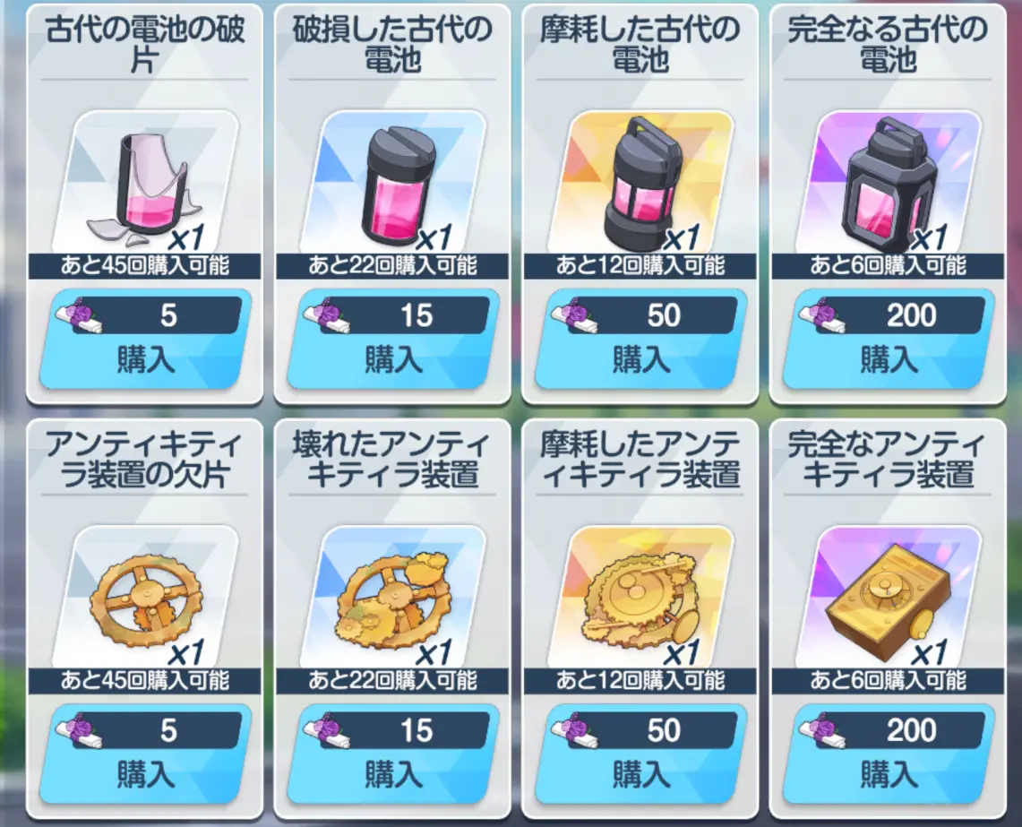参加定期训练 | ![]() ![]() 装备*4-5、初级强化珠*1、 千年教育光盘、阿拜多斯教育光盘 | |