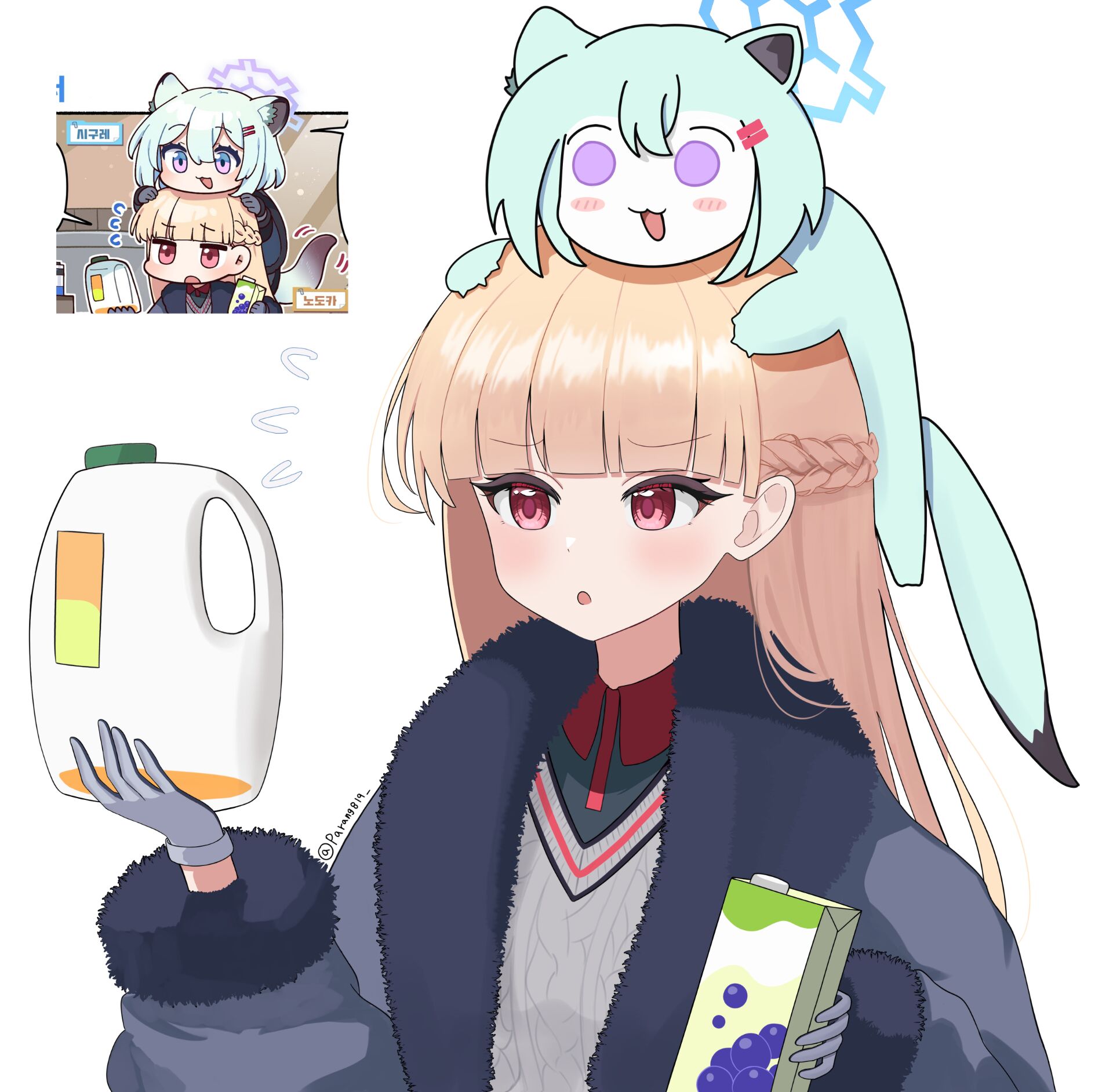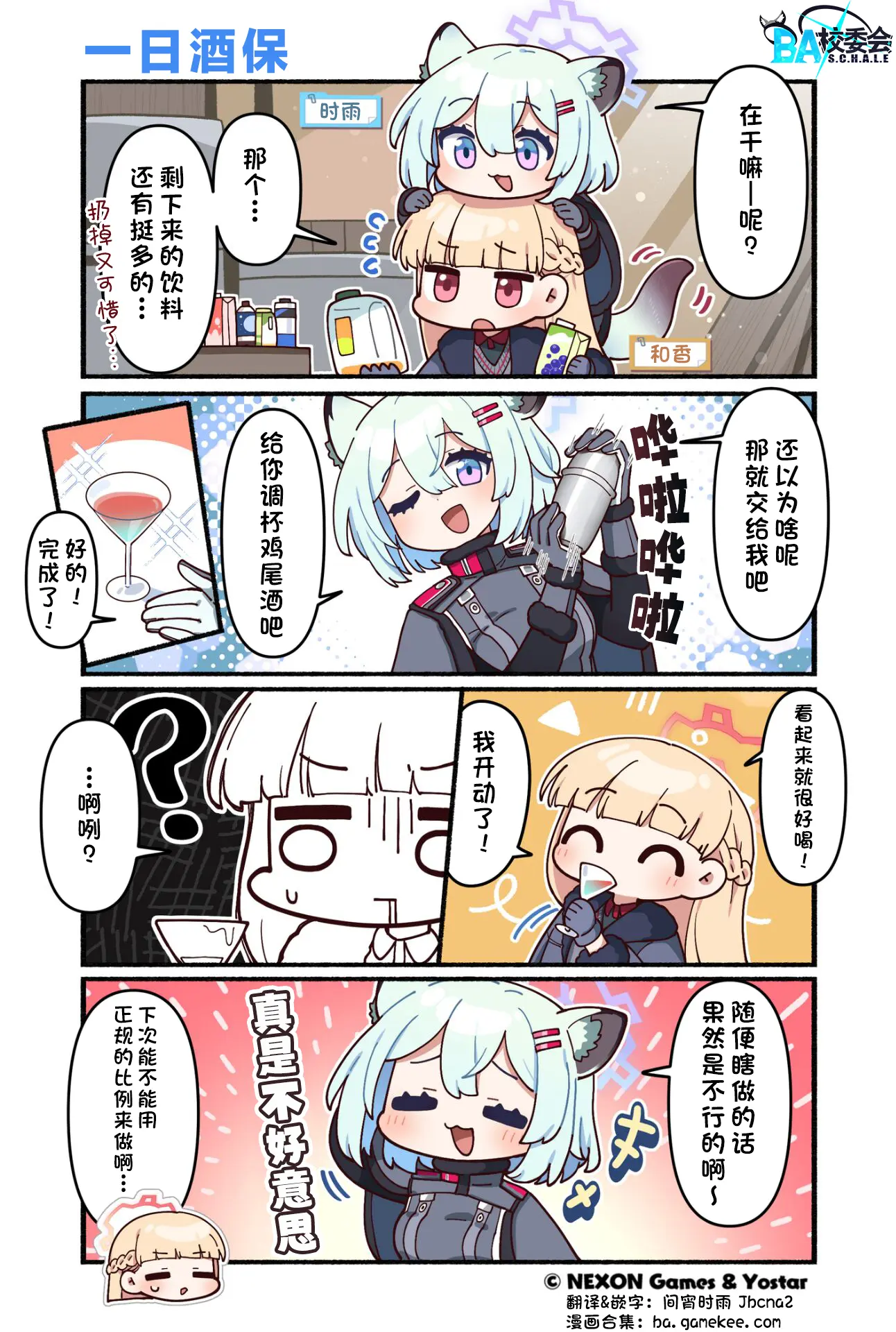 似乎因为需要处理几瓶剩下的饮料而感到困扰的和香同学。此时,带着妙计的时雨同学出现了……