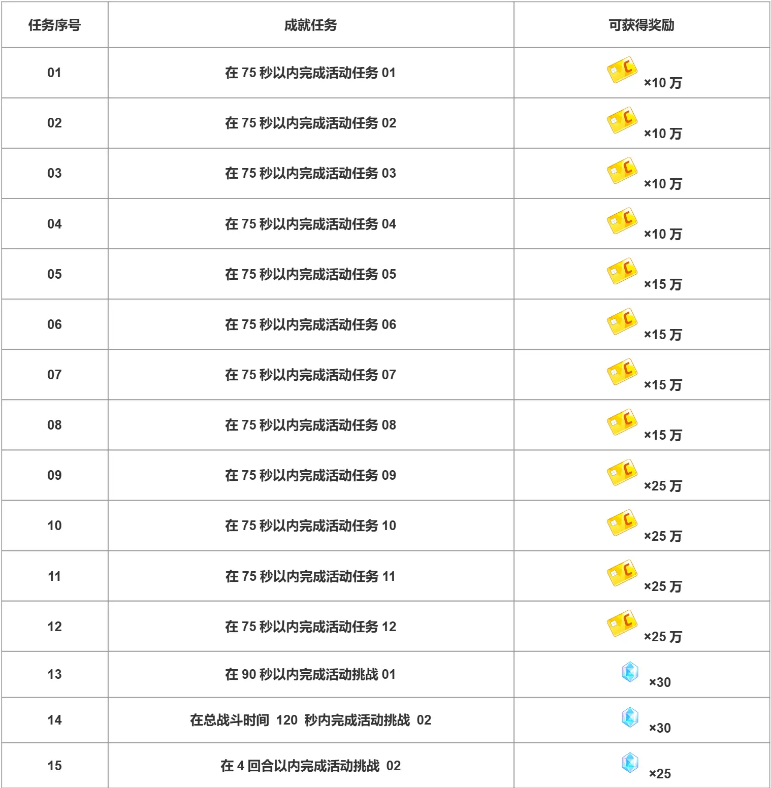 以下为本次活动的成就任务总计可获得200万信用点、300青辉石。
