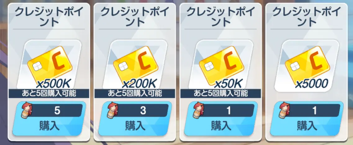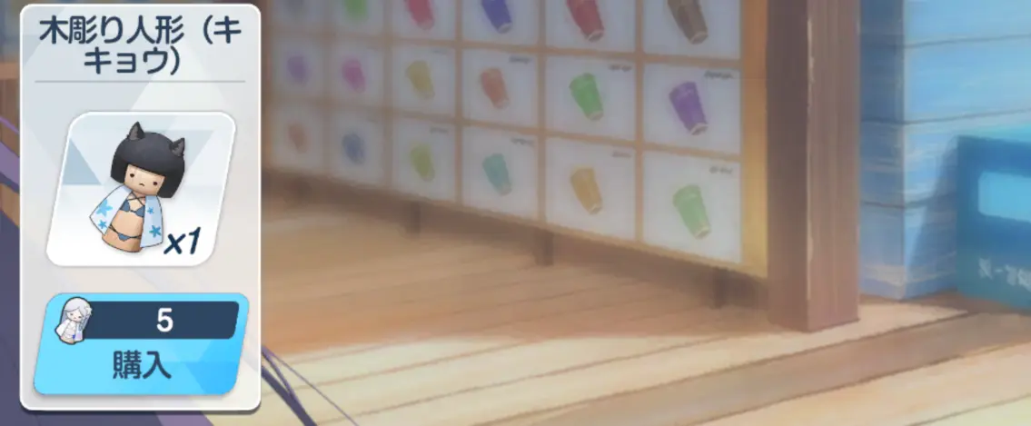 ![]() | 优先级从上倒下排列 青辉石 必换 神名碎片 必换 紫礼物 必换 橙礼物 可换 秘传 可换 泉奈神名 可换 互动家具 自选 信用 500K 信用 200K 信用 50K 信用 5000 |