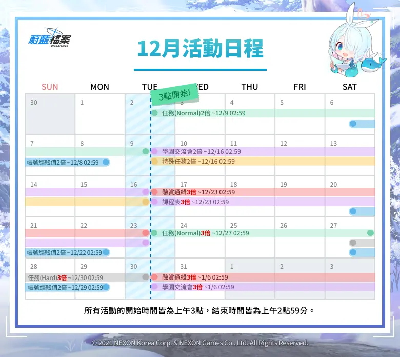 4 | 任務(Normal) 3倍 | 12月23日(二) 上午3點 ~ 12月27日(六) 上午2點59分 |