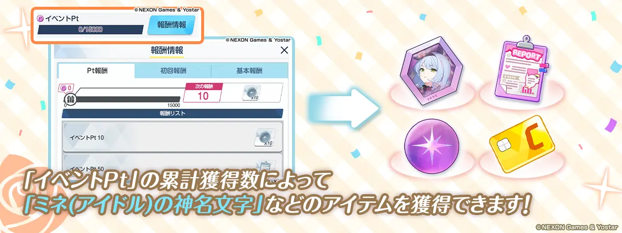 另外,根据累积获得的「活动Pt」可以获得各种道具物品,请不要忘记领取。