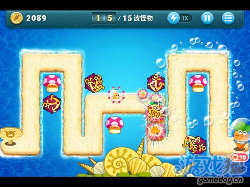 这一关没有难点,只有惊喜,新增加的船锚炸弹实在是太好用了,攻击范围广,而且分裂后可以定向攻击道具,但是是随机的,小编用过之后的新的就是有钱一定多买多升级此物,然后不用用它点击道具攻击,而是锁定怪物,这样效率更佳。