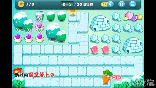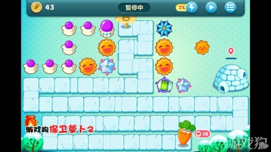 保卫萝卜冬季3金萝卜攻略,本关必须等到第四波汽油瓶升级到满级以后才能开始清理道具,之前攻击距离是意志不够的,而且千万不要优先升级满打出来的魔法球,而是快速清理道具,放太阳群攻敌人,到后期在升级魔法球才可以过关,不然中期容易跑掉怪物的。具体的流程小编下来来讲讲。