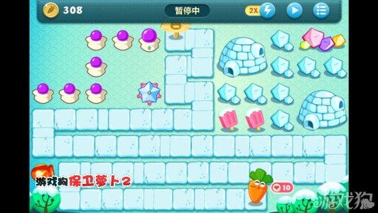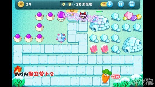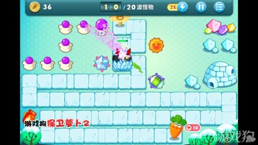 前部清理掉之后先放一个满级的减速星星,然后在升级右边的那一个魔法球到满级,就可以打到右边的冰屋了。