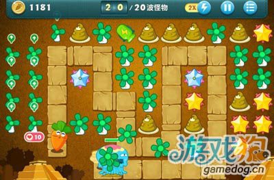 关卡11来源:游戏狗 作者:Mufasa出处:http://baoweiluobo.gamedog.cn/guanka/20121107/75925.html这关的难度不是特别大,由于这关提供的塔种类有点少,所以唯一需要注意的就是一定要想办法先把中间的大宝箱打掉,这样可以最快的获得金钱和炮塔,剩下的就是欣赏漫天飞舞的“小李飞刀啦”!