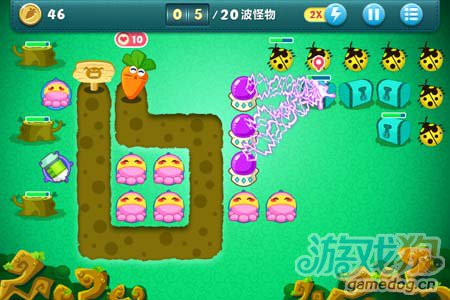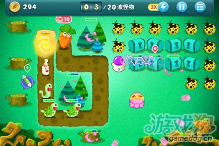 本关的重点是第4波前将中间的大树打掉放上2个章鱼!然后后半段使用魔法球避免跑掉小怪!其实本关对手机配置的要求也很高,小编的破iphone4,章鱼放太多了导致卡的要死要活的。好了,废话不多说,开始详细说说流程。